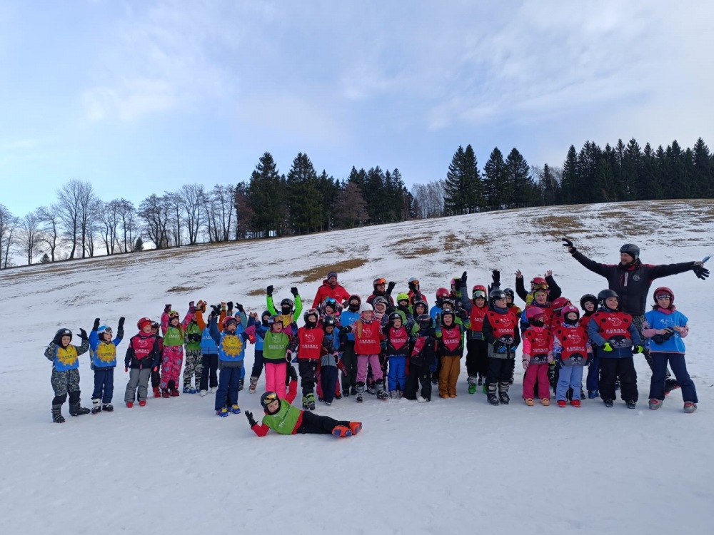 Více než polovina našich žáků se v minulém týdnu zúčastnila lyžařského výcviku „Soptíkovo lyžování“ v Olešnici. V pondělí 12. 1. 2026 nás na první lyžování vyprovodil silný mráz, přesto děti odjížděly natěšené a s úsměvem na tvářích. Po zbytek týdne nám však sněhové podmínky i počasí přály.