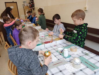 Po prohlídce výrobny čekalo na žáky překvapení v podobě tvořivých dílniček. V nich si každý mohl ozdobit vlastní vánoční kouli pomocí třpytivého zásypu. Děti si práci moc užily a s radostí si odnesly originální ozdobu jako krásnou památku na celý výlet.